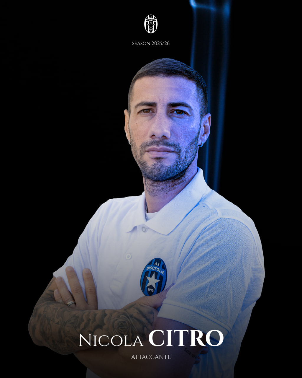 Con grande orgoglio, l’AS Bisceglie Calcio 1913 annuncia di aver ufficialmente raggiunto un accordo con Nicola Citro, attaccante classe 1989 che ha scelto di sposare la causa nerazzurra ed è da subito a disposizione di Mister Pino Di Meo.