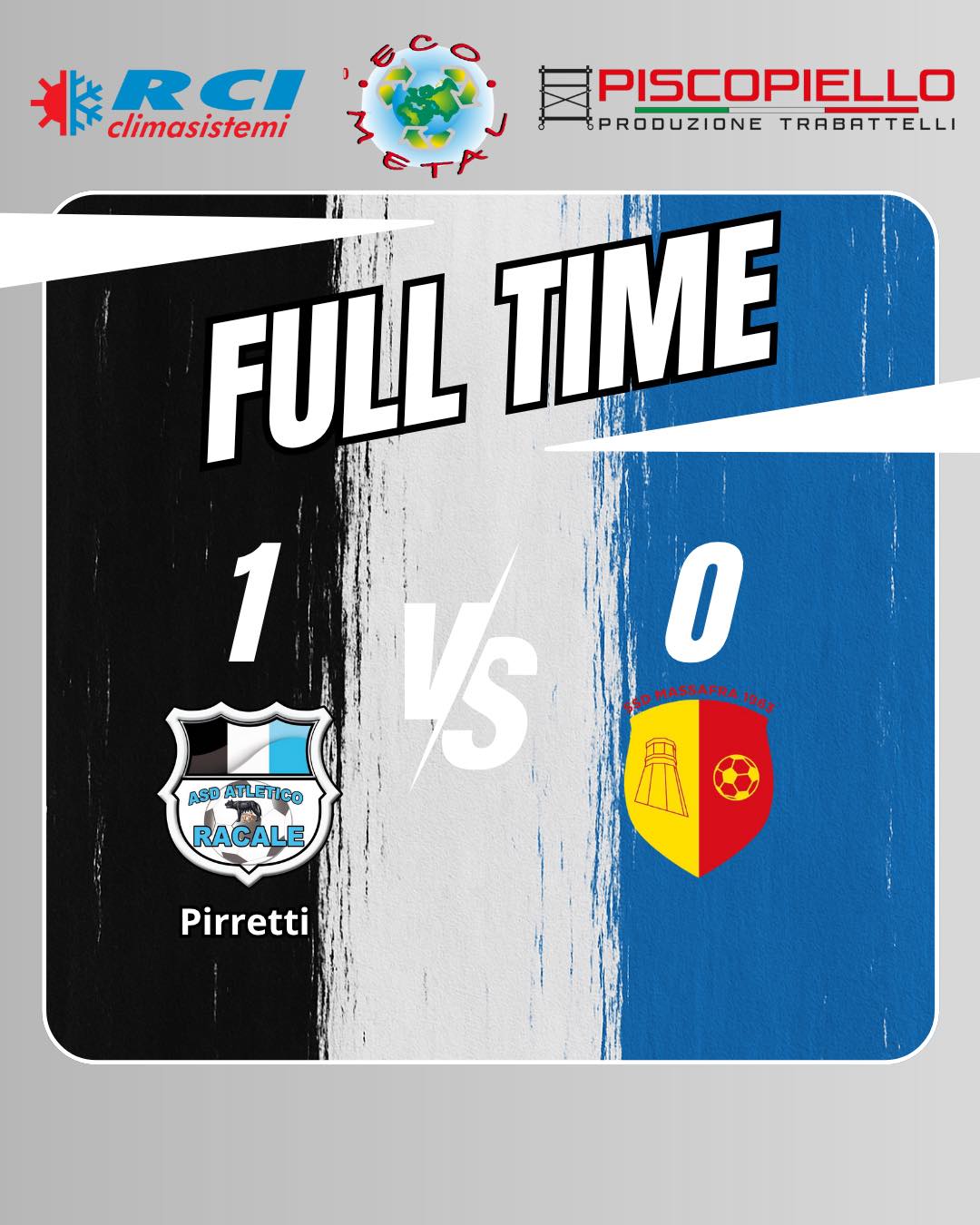 Pronta la reazione del Massafra, che nel frattempo rivoluziona il reparto offensivo e sfiora il pareggio con Maiorino. Colazo respinge il tiro ravvicinato, salvando la vittoria che consente al Racale di fare bottino pieno.