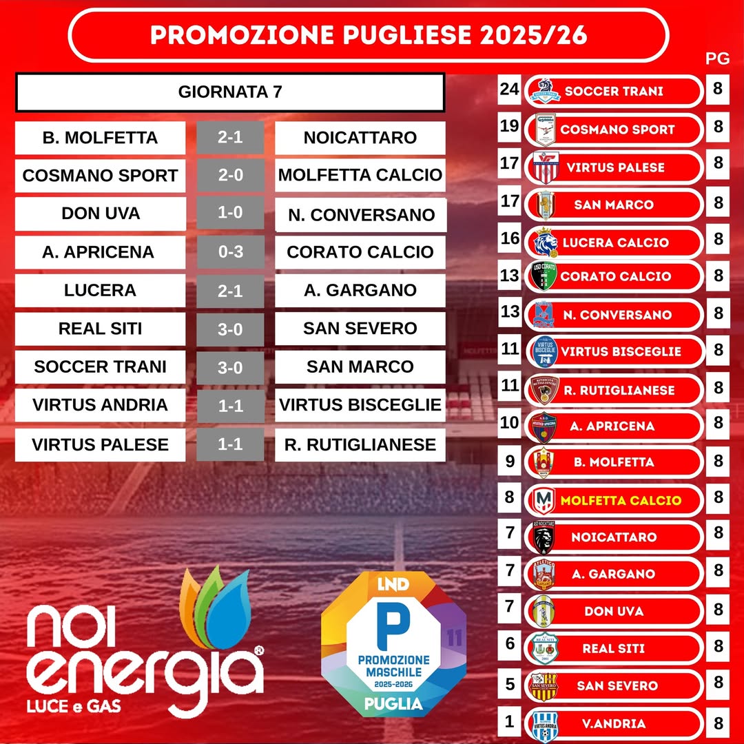 Nella prosecuzione dell’incontro, il Molfetta continua a spingere con Camara che prova subito la conclusione e una serie di azioni insistite che fruttano anche calci d’angolo. Un episodio complica la serata: Caputo viene espulso e i biancorossi restano in dieci. Nonostante l’inferiorità numerica, la squadra mantiene il baricentro alto, gioca stabilmente nella metà campo avversaria e costruisce opportunità, mancando però la zampata decisiva. Il Cosmano si difende con ordine e porta a casa il risultato.