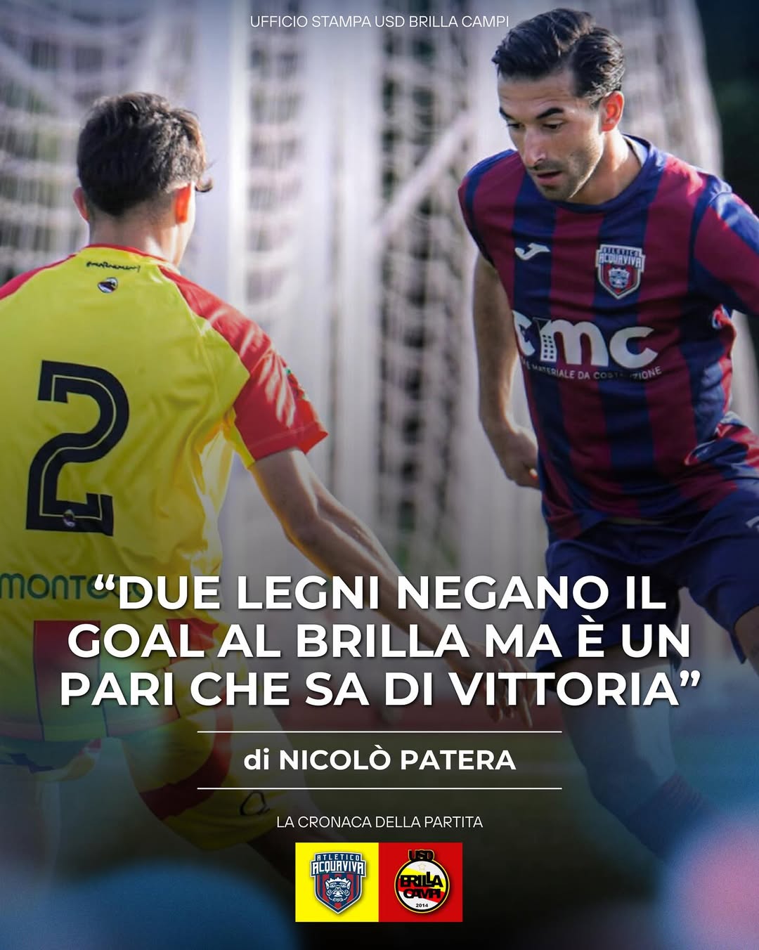 Dunque, un pareggio preziosissimo quello maturato oggi dal Brilla Campi, sia per lโavversario con il quale si รจ confrontato, sia per lโimportanza che puรฒ assumere sotto un punto di vista psicologico ed emotivo nella mente e nelle gambe dei ragazzi giallorossi!