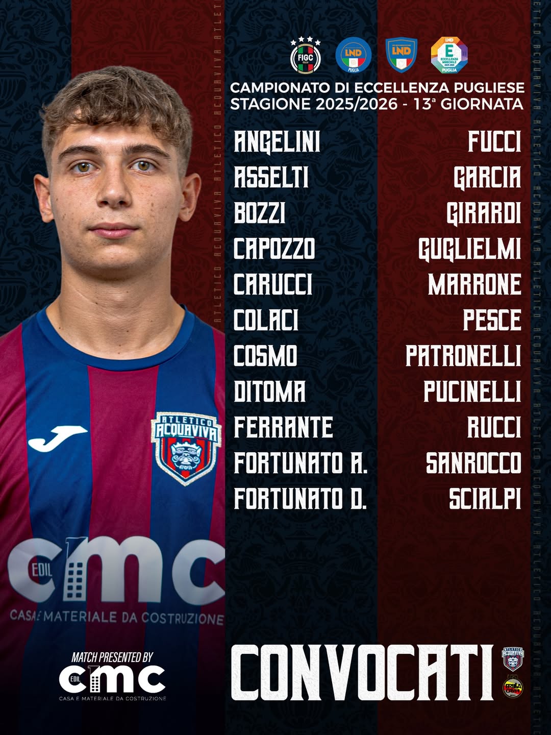 #convocati #EccellenzaPugliese #AtleticoAcquaviva #CuoreRossoblu