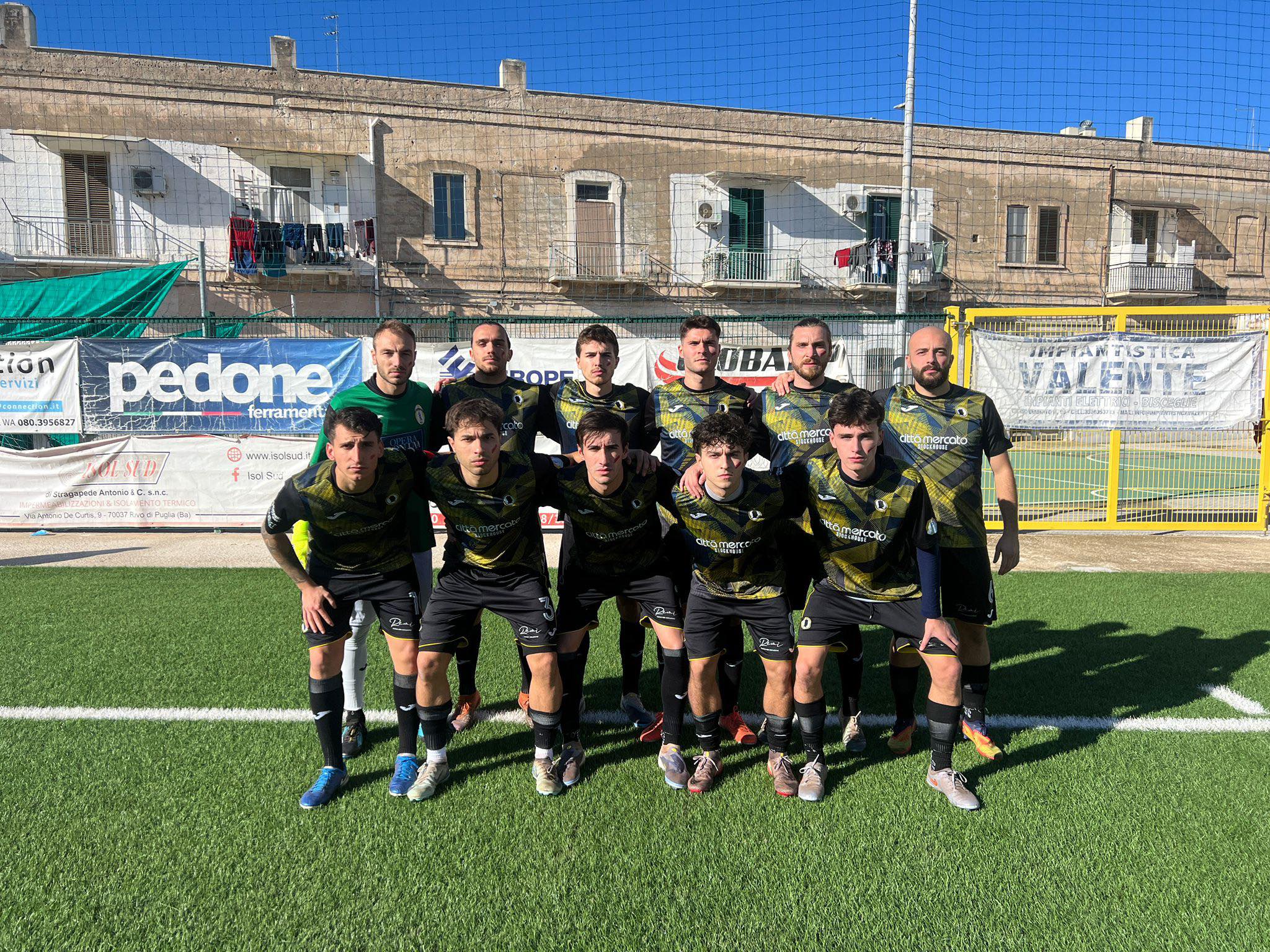 I bianco-gialli, alla seconda vittoria consecutiva, superano 2-0 il Molfetta Calcio grazie alle firme del neoacquisto Caldarulo e di Conte, entrambi a segno nella ripresa. Una vittoria importantissima per la squadra di mister Carlucci, arrivata dopo un primo tempo complicato e una seconda frazione fatta di carattere, grinta e lucidità sotto porta.