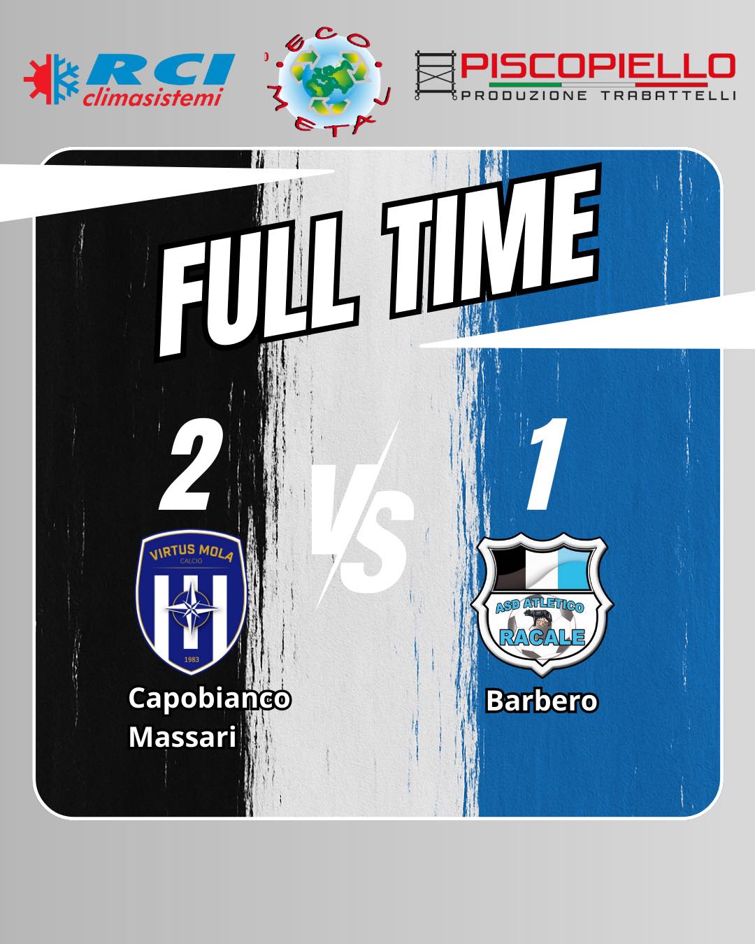 Dopo una gara dominata in lungo e in largo, torniamo a casa con molti rimpianti per aver sprecato una buona prestazione. Dopo un avvio promettente, troviamo il vantaggio dopo diverse azioni pericolose tra cui una traversa colpita da Pirretti e un intervento straordinario del portiere Colonna, ma un bellissimo fraseggio con Arias viene concluso in porta con uno splendido gol del solito Barbero. Chiudiamo il primo tempo in vantaggio, avendo sfiorato il raddoppio in diverse occasioni.
