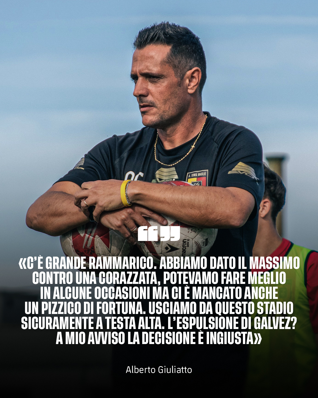 ยซรˆ stata una partita combattuta, avevamo di fronte una corazzata. Credo che usciamo da questo stadio a testa alta. Abbiamo dato il massimoยป ๐ŸŽ™ Commenta cosรฌ la gara contro la capolista Bisceglie il tecnico magliese ๐—”๐—น๐—ฏ๐—ฒ๐—ฟ๐˜๐—ผ ๐—š๐—ถ๐˜‚๐—น๐—ถ๐—ฎ๐˜๐˜๐—ผ: ยซPotevamo sfruttare sicuramente meglio le tante occasioni avute ed essere un po’ piรน fortunati sugli episodi. Certo, il rammarico รจ grande, perchรจ nel nostro momento migliore, mentre cercavamo di raddrizzare la partita, l’espulsione di Galvez – a mio avviso ingiusta – ci ha privato delle nostre armi in piรน per potere far male. Adesso ci rimetteremo subito al lavoro per affrontare al meglio l’anticipo di sabato contro il Massafraยป