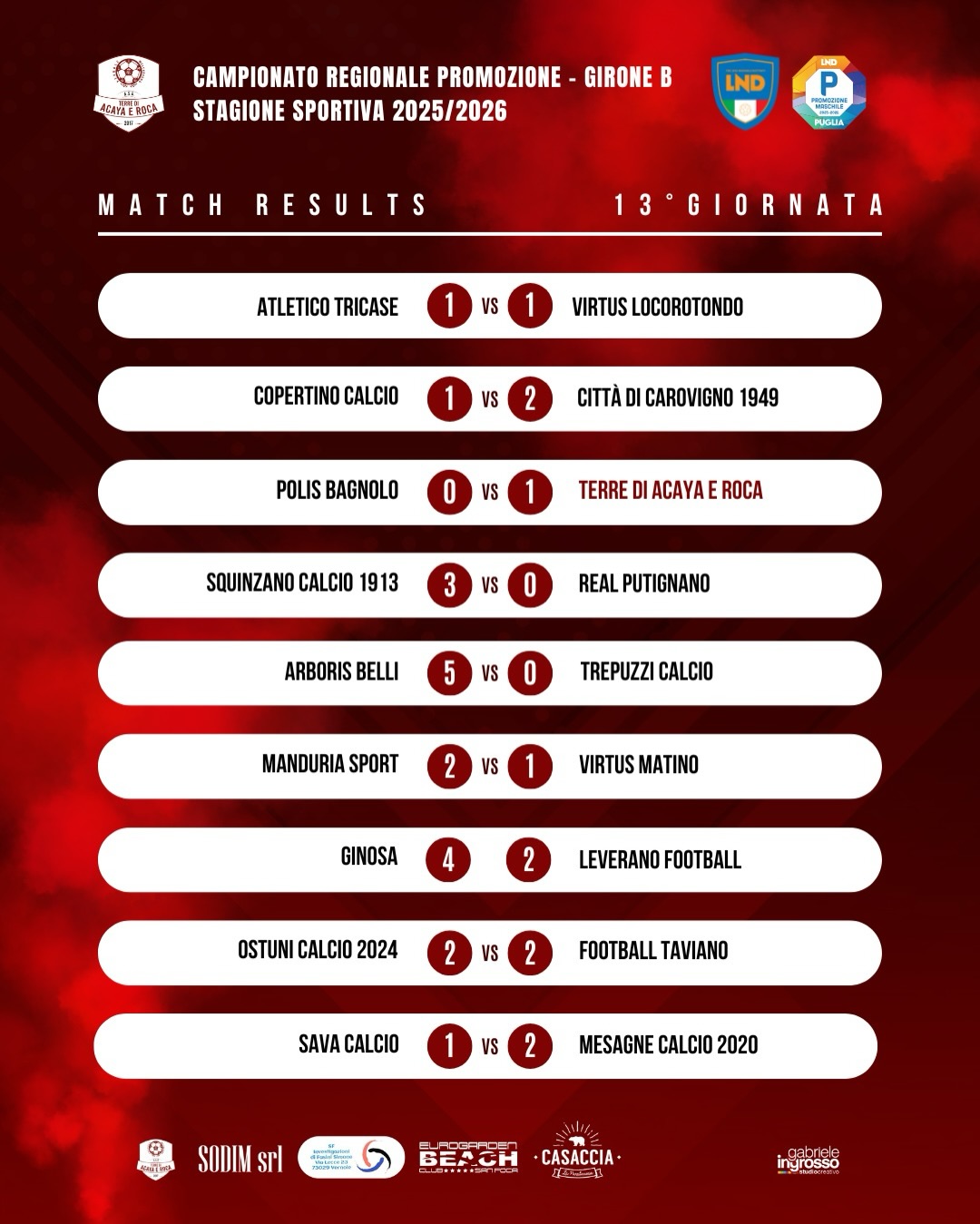 Terre di Acaya e Roca, RISULTATI E CLASSIFICA