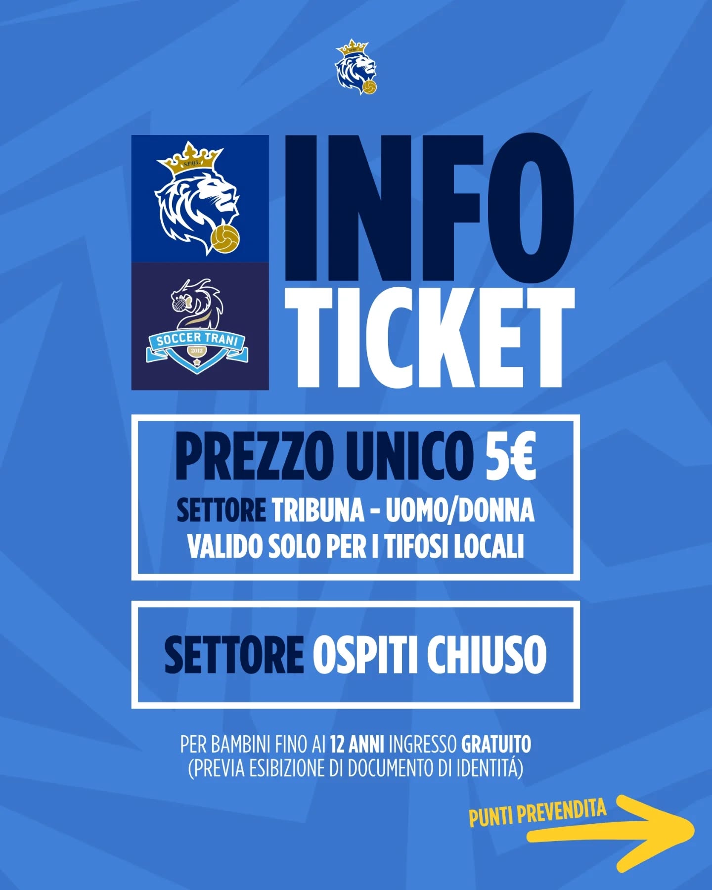 ๐ฃ๐ฟ๐ฒ๐๐๐ผ ๐๐ป๐ถ๐ฐ๐ผ: ๐ฑโฌ (uomo/donna โ settore tribuna, valido solo ai tifosi locali, settore ospiti chiuso)