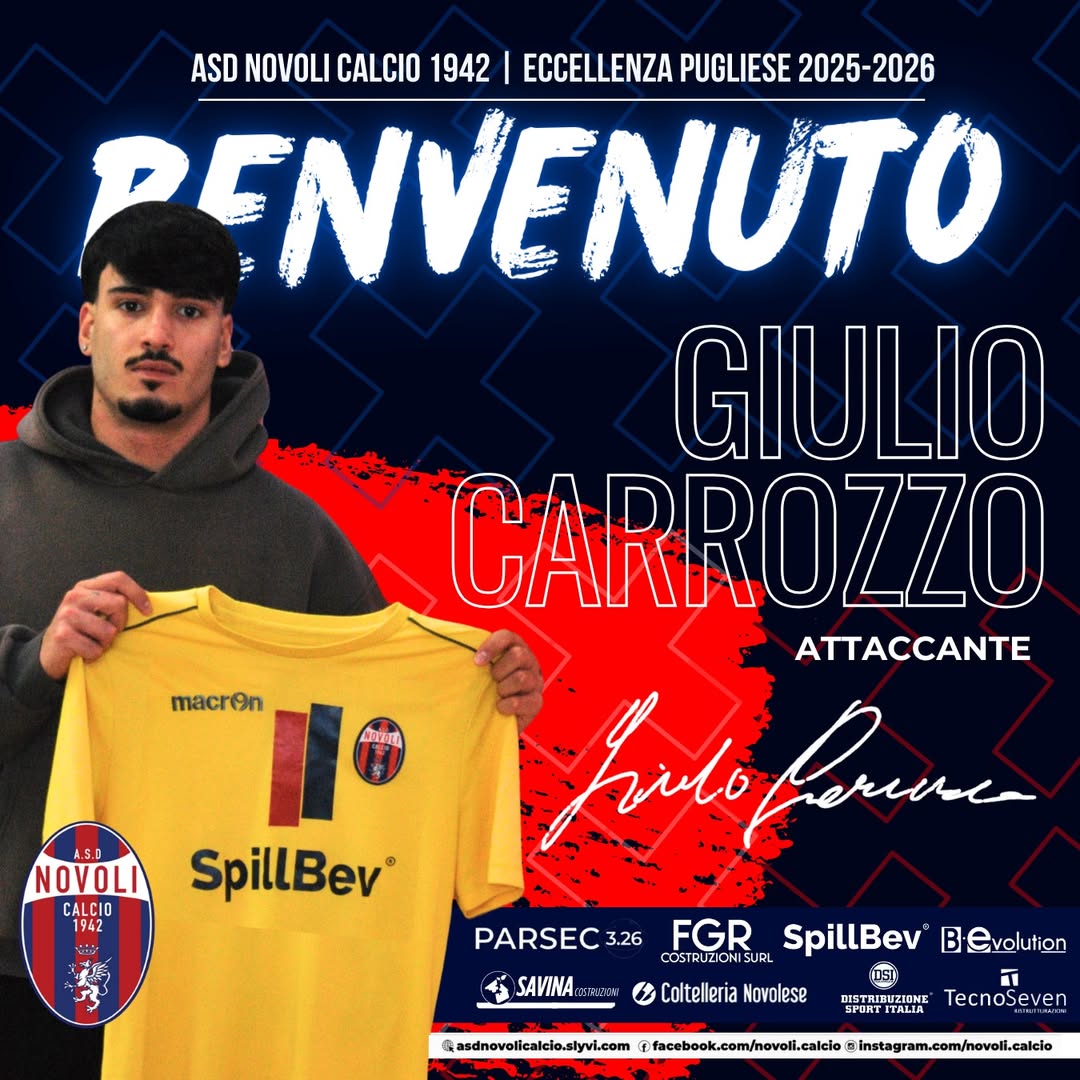 Non si ferma il lavoro dell’Area Tecnica del Novoli Calcio, con i direttori Russo e Capone che mettono a segno un colpo importante di #calciomercato per la linea offensiva di mister Luperto. ๐‘ฎ๐’Š๐’–๐’๐’Š๐’ ๐‘ช๐’‚๐’“๐’“๐’๐’›๐’›๐’, infatti, รจ un nuovo calciatore #rossoblรน, un ennesimo sforzo voluto dalla dirigenza novolese del presidente Murra per centrare l’obiettivo salvezza. Attaccante classe 2004, รจ cresciuto nel Settore Giovanile dell’U.S. Lecce, dai Giovanissimi Nazionale alla Primavera 1, maturando esperienza nelle giovanili della Spal e, in Serie D, con le maglie del Sant’Agata, Notaresco e Chieti. Nell’attuale stagione ha giocato nella fila dell’Ugento, prima di entrare a far parte della rosa novolese nelle ultime ore che hanno anticipato l’ultima gara del girone di andata dell’Eccellenza Pugliese.