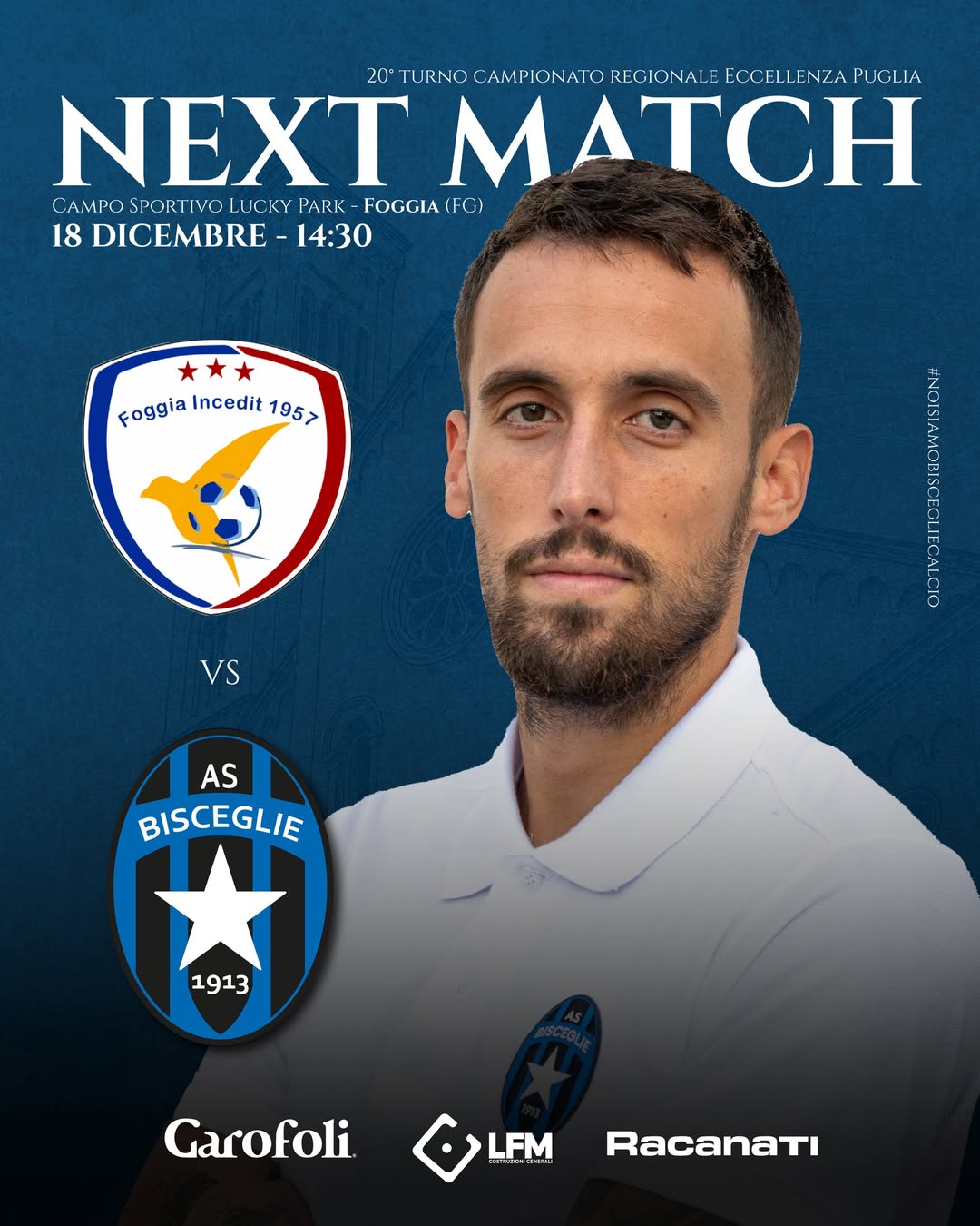 Lavoro, dedizione, coesione e capacità di reagire ai momenti difficili: con queste qualità il Bisceglie ha concluso il girone d’andata conquistando sul campo ben 44 punti (ridotti a 43 per il -1 in classifica) e inizierà da primatista in solitaria la seconda metà del campionato: giovedì 18 dicembre, con calcio d’inizio alle 14.30, la squadra di Mister Pino Di Meo sfiderà il Foggia Incedit al “Lucky Park” (ex-Campo FIGC), nella prima giornata del girone di ritorno del campionato di Eccellenza pugliese 2025/26.