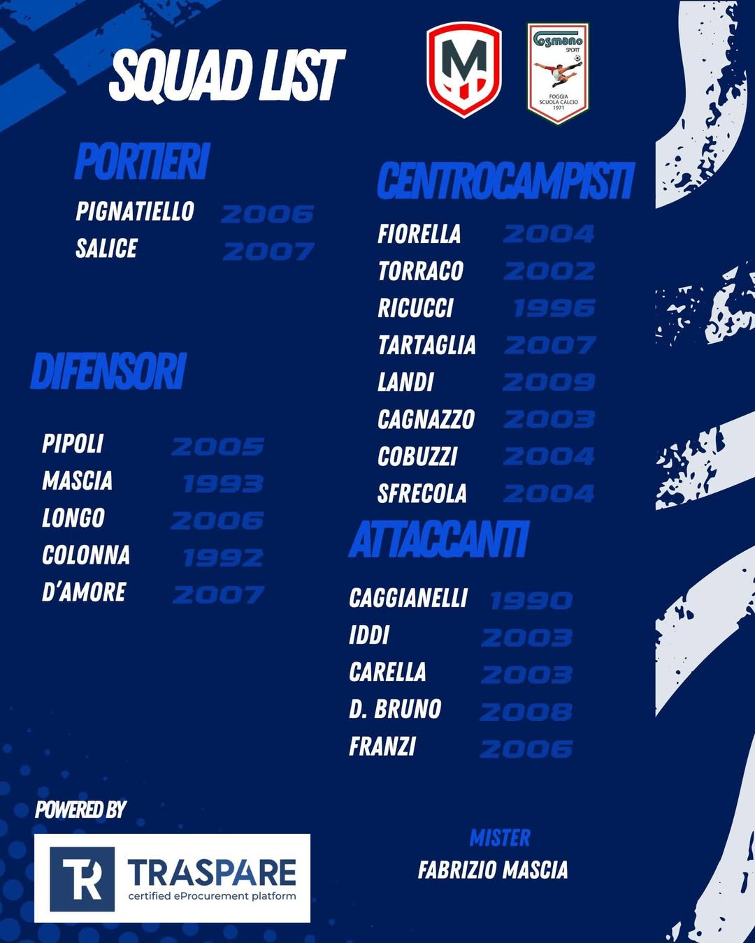 PromozionePromozione Pugliese Girone A Cosmano Sport Foggia – I convocati Redazione Calciowebpuglia 21 Febbraio 2026 15 TagsCalcio DilettantiCalcio PuglieseCosmano Sport Foggia Facebookpromozione pugliesePromozione Pugliese Girone A Ecco la lista dei convocati da mister Mascia per la gara di domani💙#noisiamolacosmano Fonte: Facebook official page Share post: FacebookTwitterWhatsAppLinkedinTelegram Popular ⚪🔴🎤 Padova-Bari 1-1 | 26ª giornata Serie BKT 2025/26 | Post Match di Moreno Longo Top & Flop di Audace Cerignola-Casarano SERIE B | Padova-Bari 1-1, Longo: “Ragazzi hanno dato risposte, sono sempre stati dentro la partita” SSD Manduria – SQUAD LIST Top & Flop di Latina-Potenza Ti potrebbe interessareRelated ⚪🔴🎤 Padova-Bari 1-1 | 26ª giornata Serie BKT 2025/26 | Post Match di Moreno Longo Redazione Calciowebpuglia - 21 Febbraio 2026 Fonte: SSC Bari Official youtube channel Top & Flop di Audace Cerignola-Casarano Redazione Calciowebpuglia - 21 Febbraio 2026 È stato un derby bellissimo quello visto alla stadio... SERIE B | Padova-Bari 1-1, Longo: “Ragazzi hanno dato risposte, sono sempre stati dentro la partita” TeleSveva - 21 Febbraio 2026 Fonte: Telesveva Official Youtube channel SSD Manduria – SQUAD LIST Redazione Calciowebpuglia - 21 Febbraio 2026 Consegniamo in ordine di ruolo ed alfabetico ai nostri...