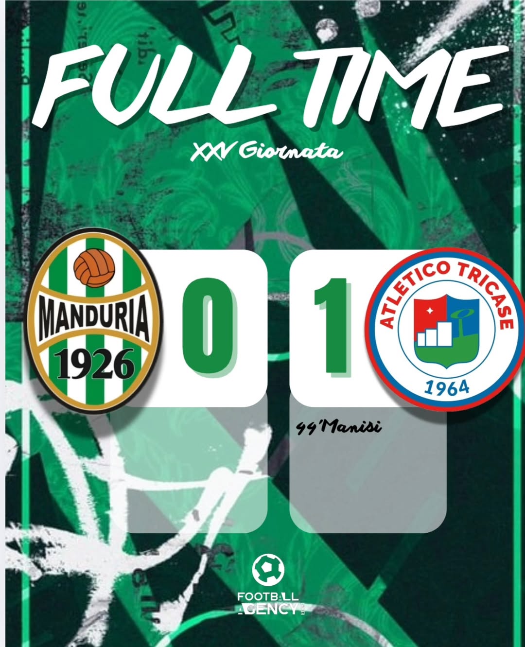 Secondo tempo più spento in cui il Tricase si chiude bene ed il Manduria non riesce a sfondare, bravo il portiere ospite a sventare i tentativi di Caputo e Cecchin. Finale amaro per i biancoverdi che dopo un intero girone riassaporano l’amaro sapore della sconfitta, non bisogna disunirsi e abbattersi ma guardare avanti in quello che è un campionato lungo difficile e pieno di sorprese.