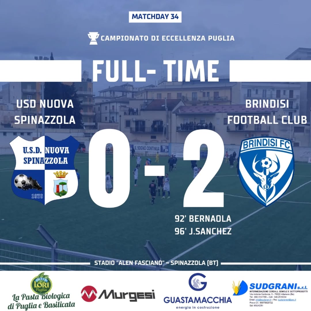 Uno Spinazzola che ci ha pure provato dopo che al secondo minuto della ripresa l’arbitro Consales aveva prima assegnato il gol del vantaggio al Brindisi per poi annullarlo per fuorigioco dopo essersi consultato con il proprio collaboratore di linea.