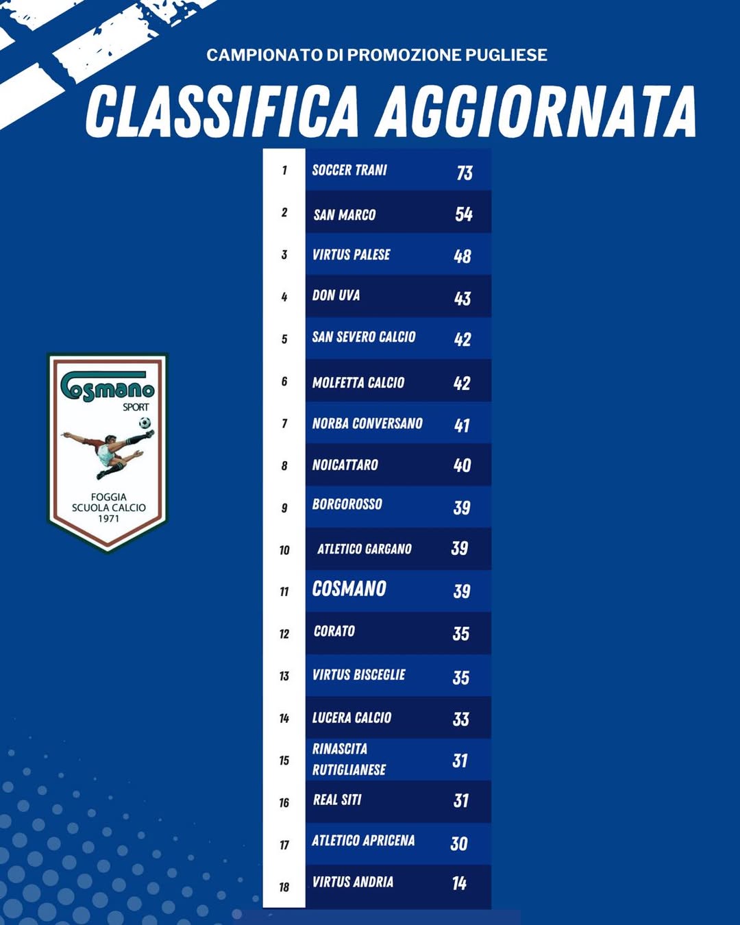 Per inadempimenti societari, alla Cosmano รจ stata inflitta una penalizzazione di 15 punti in classifica, facendola scivolare allโ€™undicesimo posto.